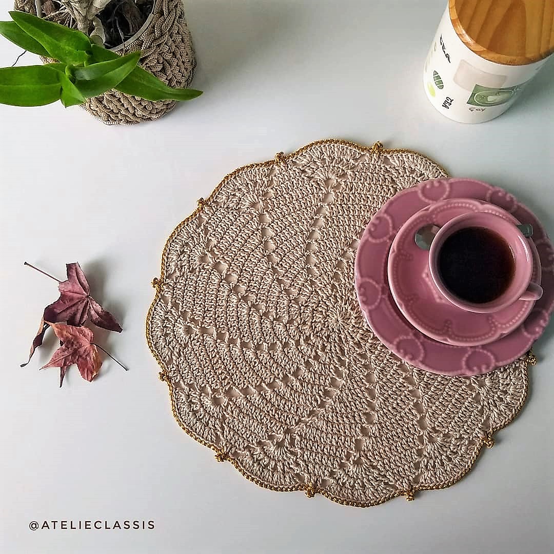 Tradicional e elegante. Esse americano de crochê deixará sua mesa de refeição refinada.
