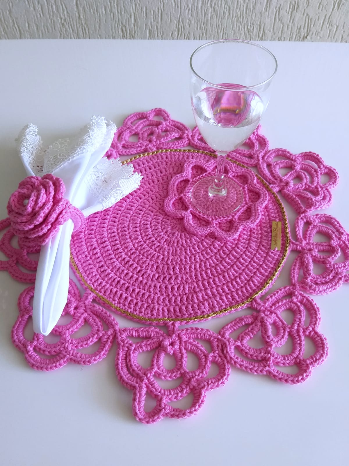 KIT: R$ 60,00 + frete – incluso 1 Lugar Americano + 1 Descanso de Copo (14 cm) + 1 porta-guardanapo