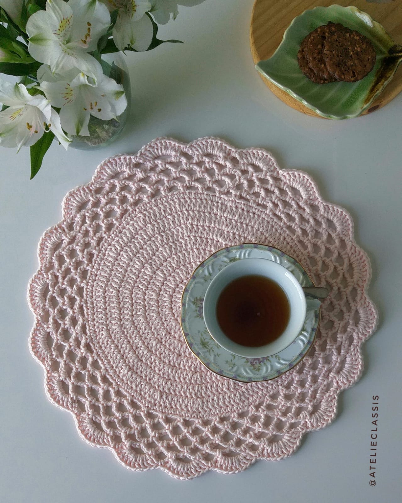 Esse modelo é perfeito para compor esse estilo de mesa. A trama é super delicada e o tom rosa claro muito harmonioso.